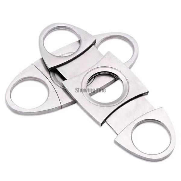 Inverted stainl stainless steel blade, cuts small and large ring gauge cigars, a clean cut.
